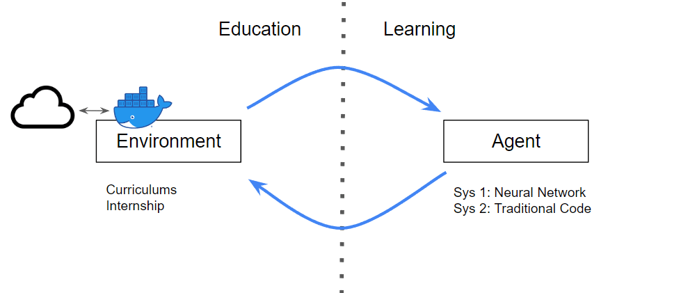 A gym-like environment with a Docker container sandbox for the agent to learn to code.