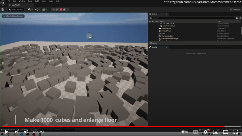 A tutorial of how to use the experimental MassEntity System in Unreal Engine 5.0 to create 1000 moving cubes.